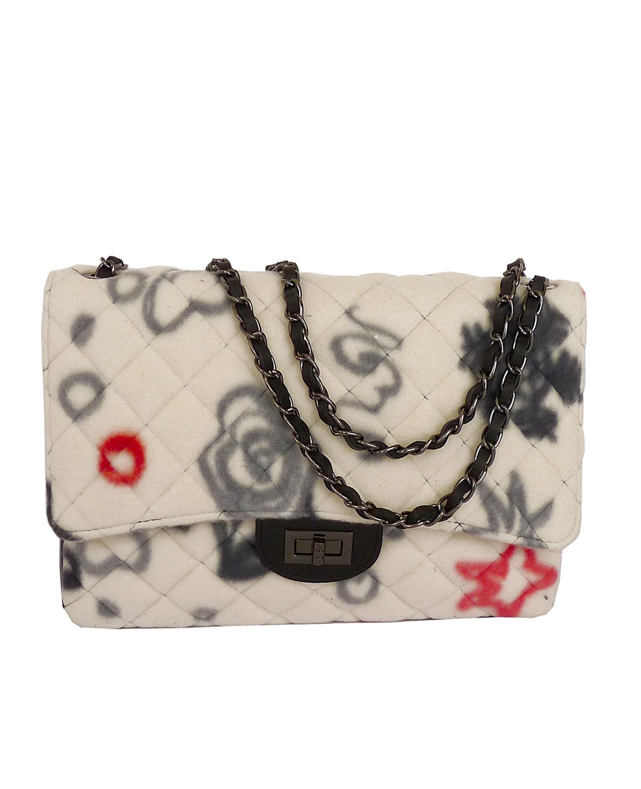 Borsa a tracolla trapuntata in morbido Pile e vera Pelle con manici in catena