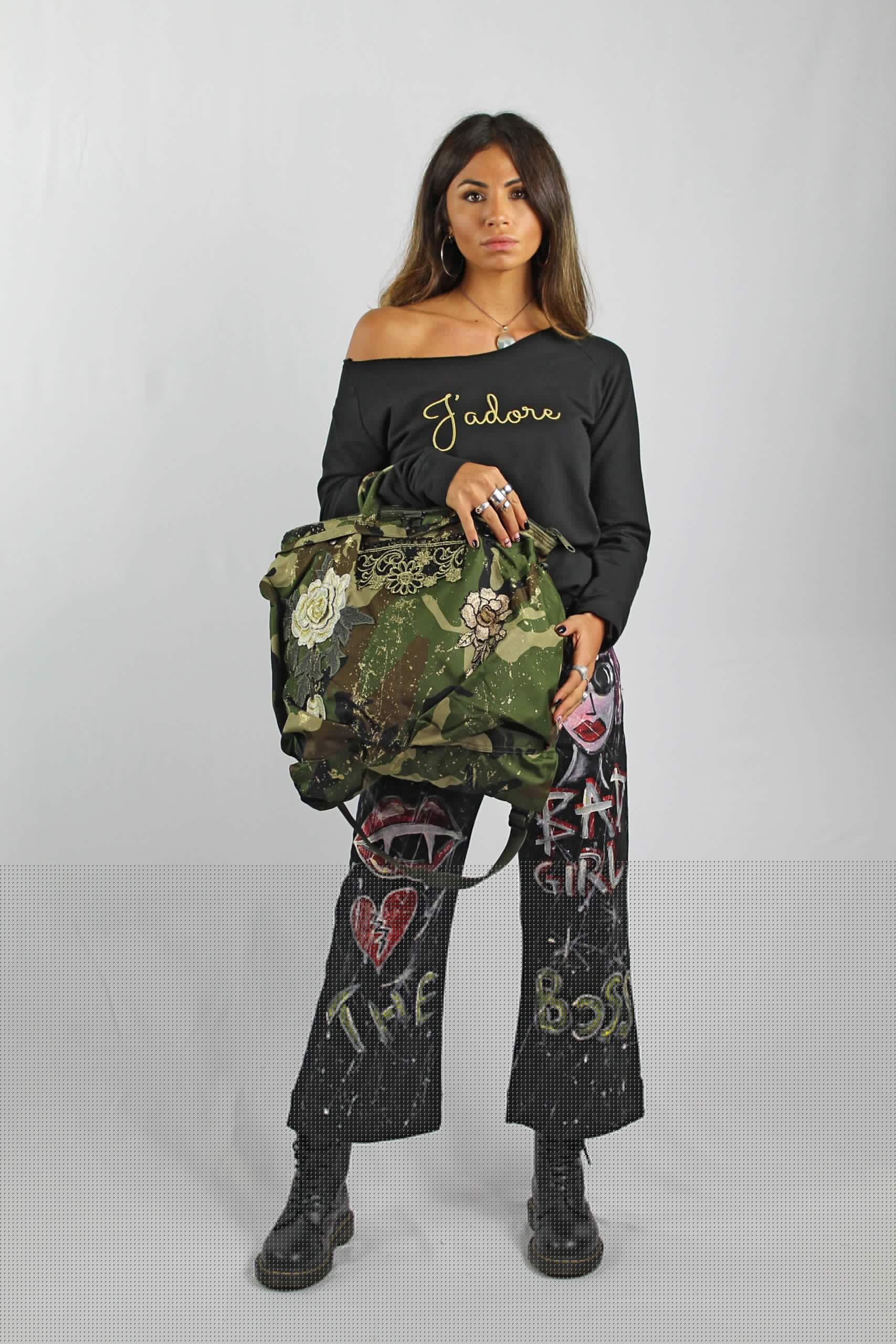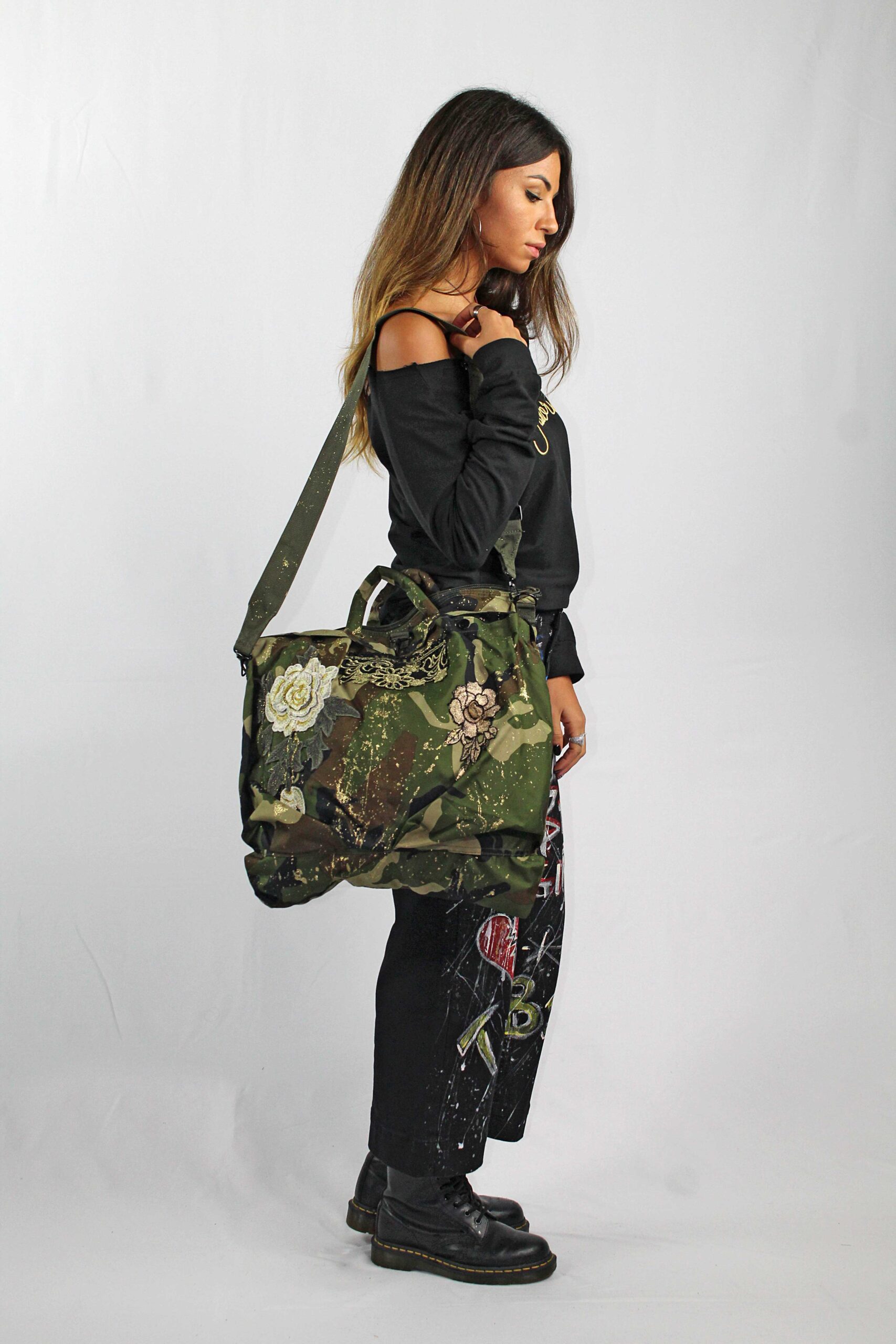 Borsa Militare Camouflage con Ricami e Applicazioni