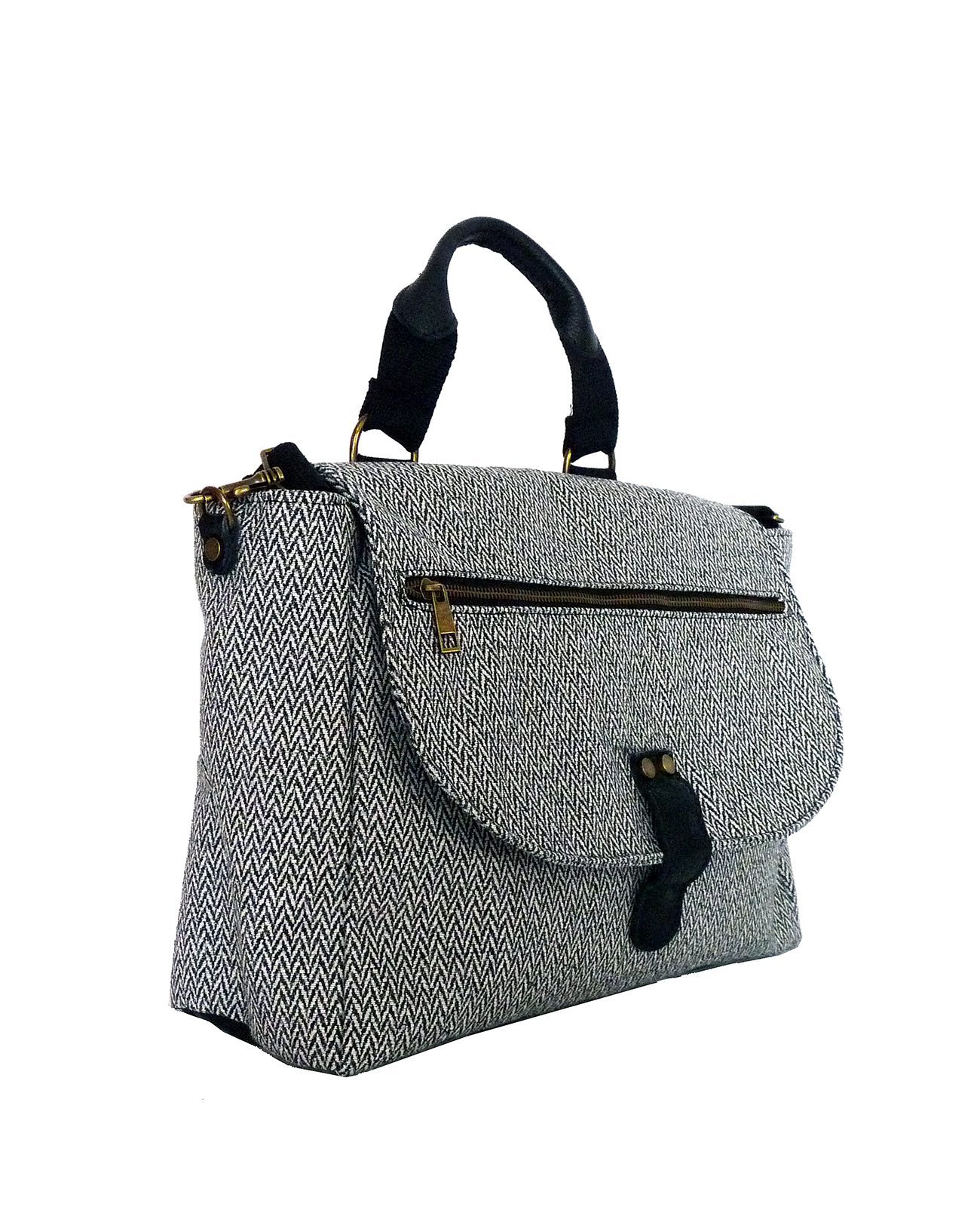 Borsa uomo a cartella con tracolla in tessuto francese e vera pelle, fodere interne a contrasto personalizzate con doppia tasca portacellulare in pelle e tasca con zip. Tracolla regolabile, metalli in ottone invecchiato, piedini antiusura.