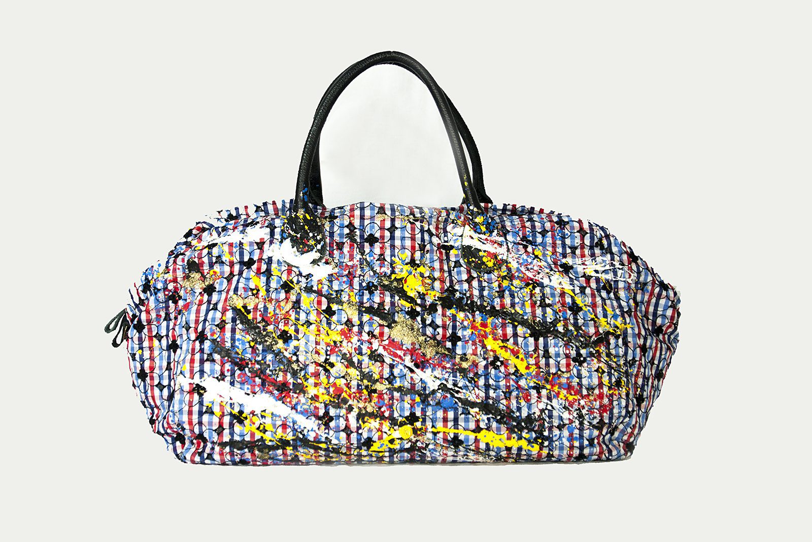 Borsone dipinto a mano in Vichy con ricami a fiori e tracolla regolabile e vera pelle, fodere interne a contrasto personalizzate con doppia tasca portacellulare in pelle e tasca con zip. Metalli in ottone invecchiato e piedini antiusura
