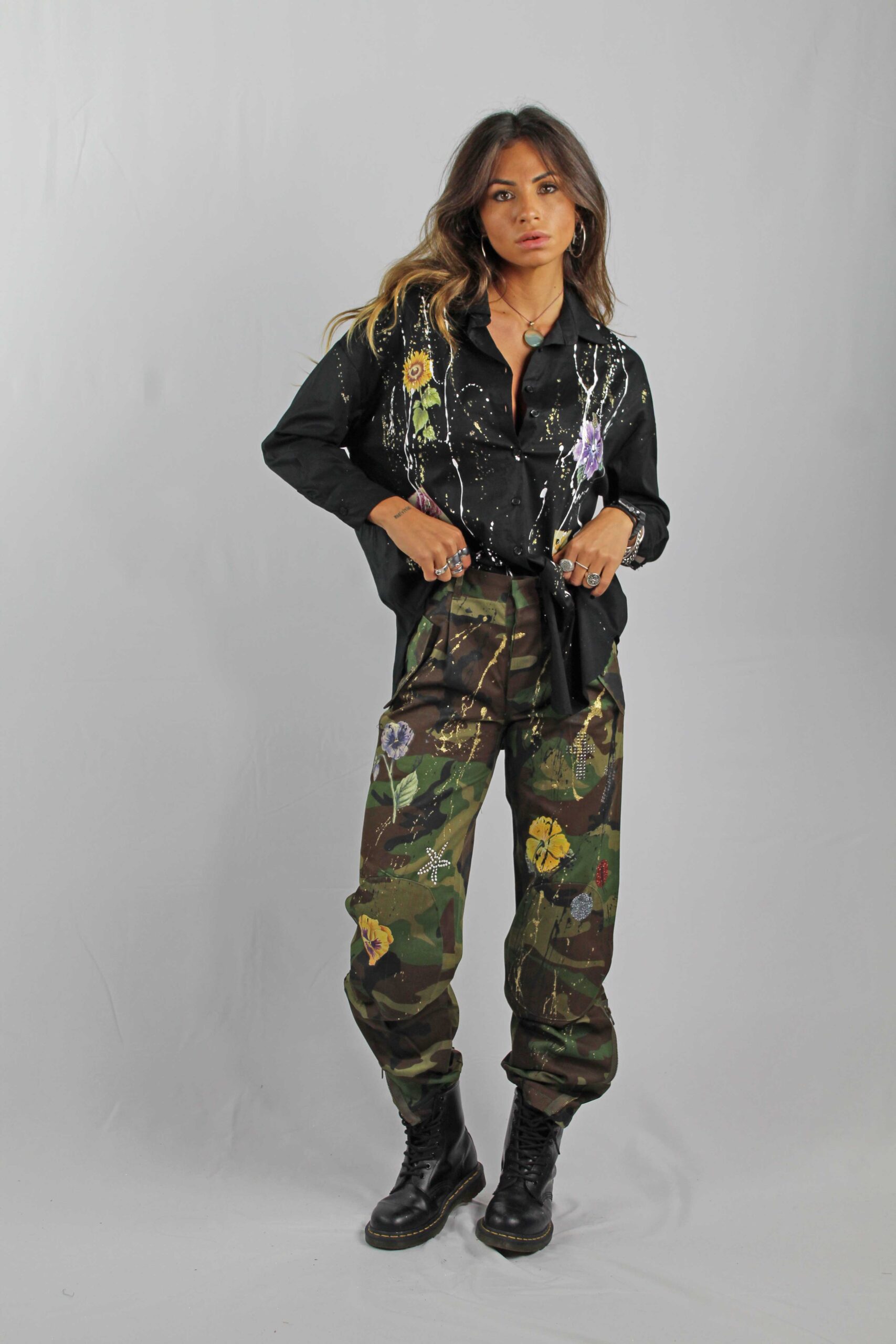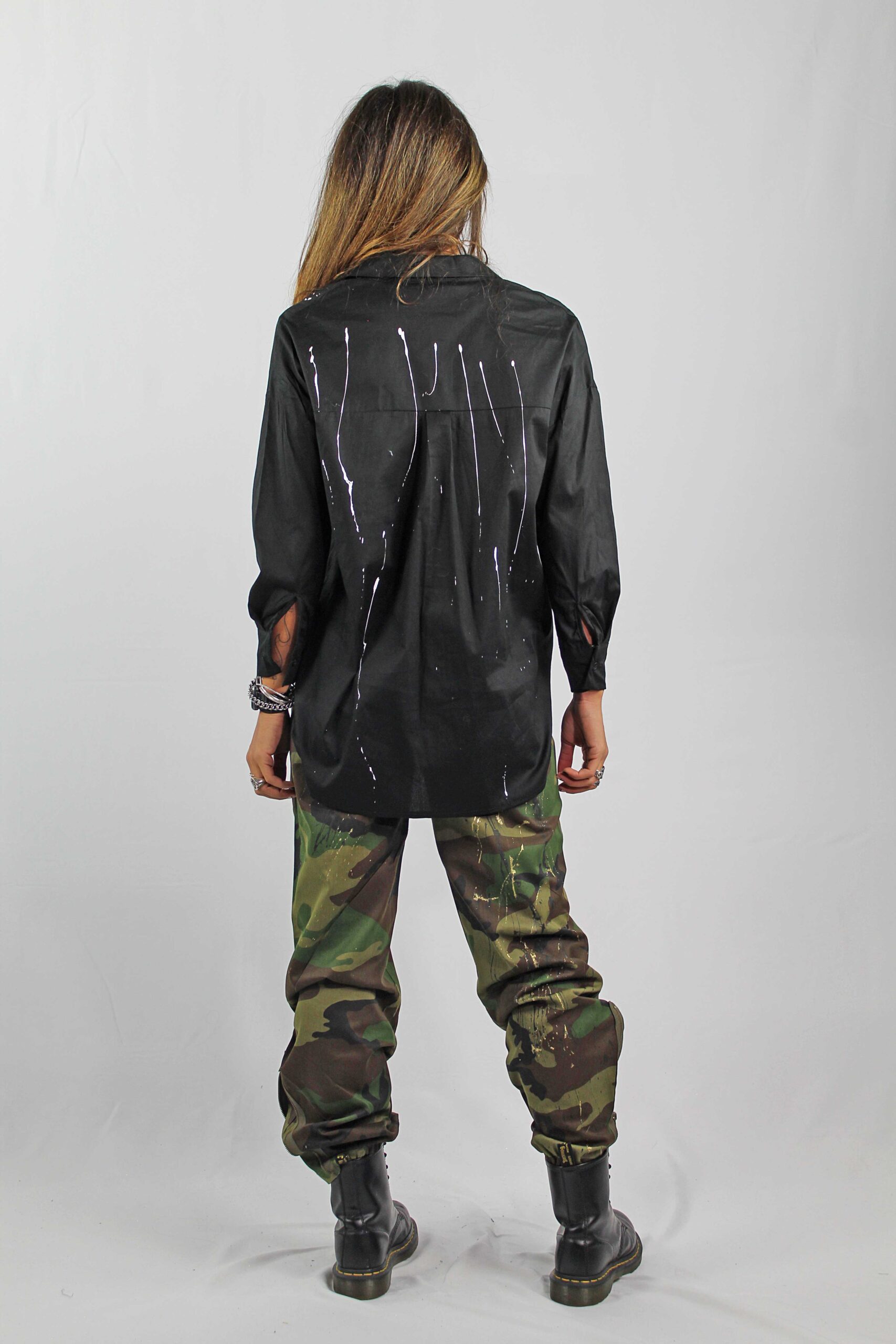- Camicia a pieghe abbottonata con risvolto dipinta a mano.