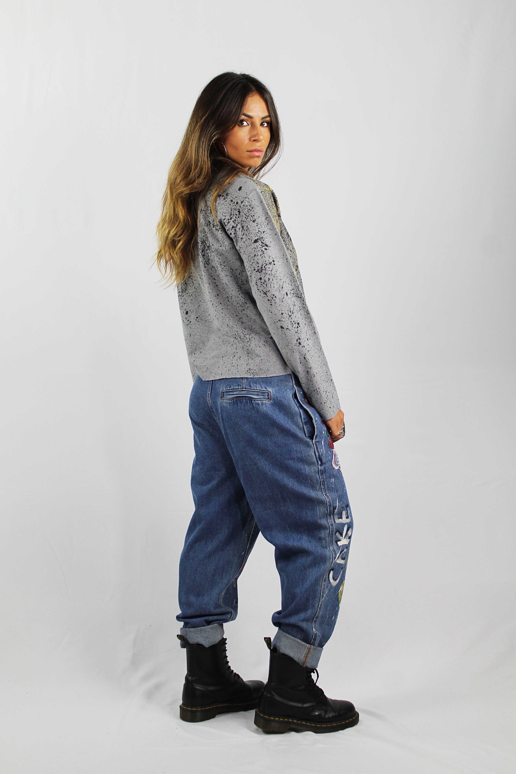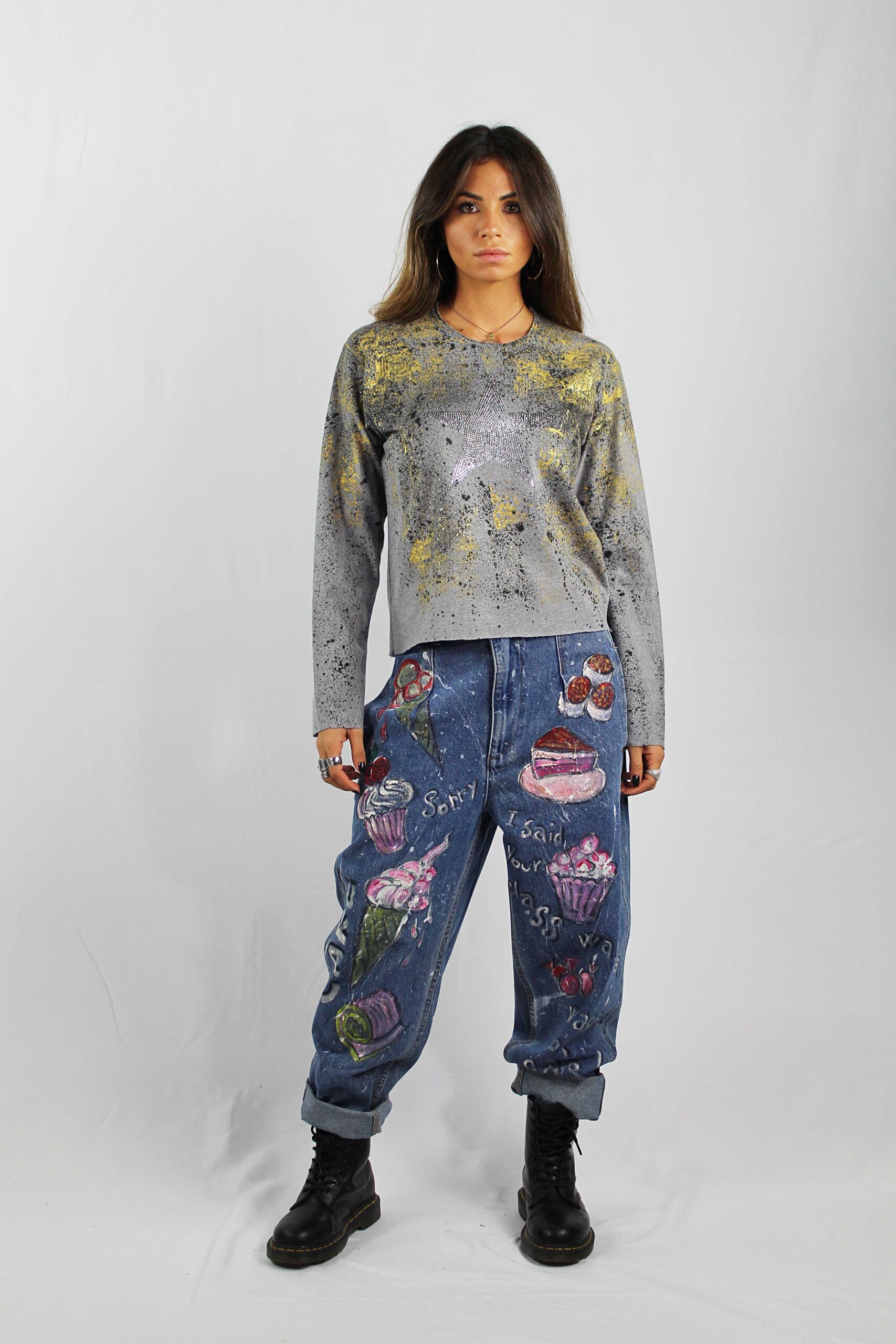 Felpa donna in cotone di alta qualità con maniche lunghe per uno stile versatile e di tendenza. Ogni capo è decorato a mano con un esclusivo motivo astratto, arricchito da una stella in strass e dettagli in lamina oro, che aggiungono un tocco artistico e raffinato. Perfetta per chi cerca un look casual chic, questa felpa si abbina splendidamente con jeans skinny o a zampa per un outfit quotidiano, oppure con pantaloni culotte in tessuto morbido per un tocco più sofisticato. Completa il look con sneakers bianche o stivaletti in pelle e una borsa a tracolla per uno stile disinvolto ma curato. Aggiungi accessori minimal in oro per richiamare i dettagli del capo e ottenere un risultato impeccabile.