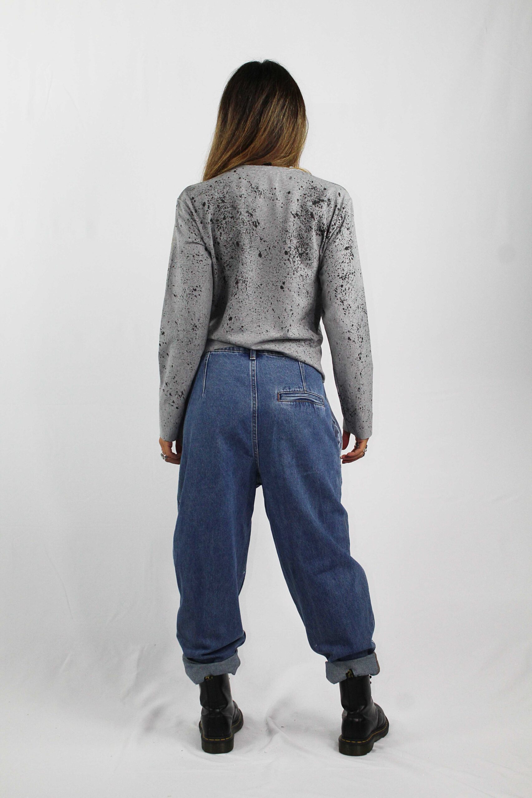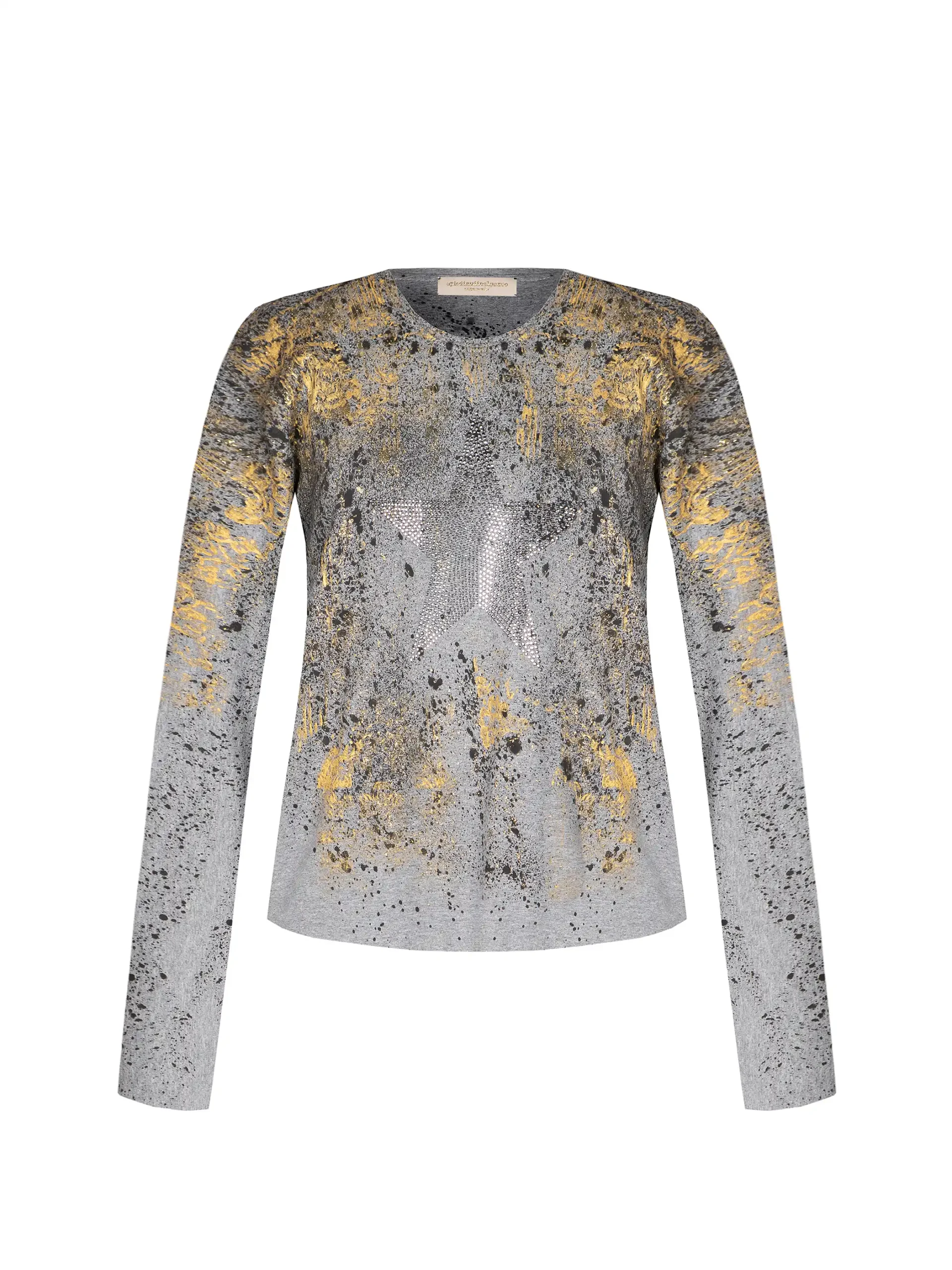 Felpa dipinta a mano Abstract Splat con Stella in Strass
