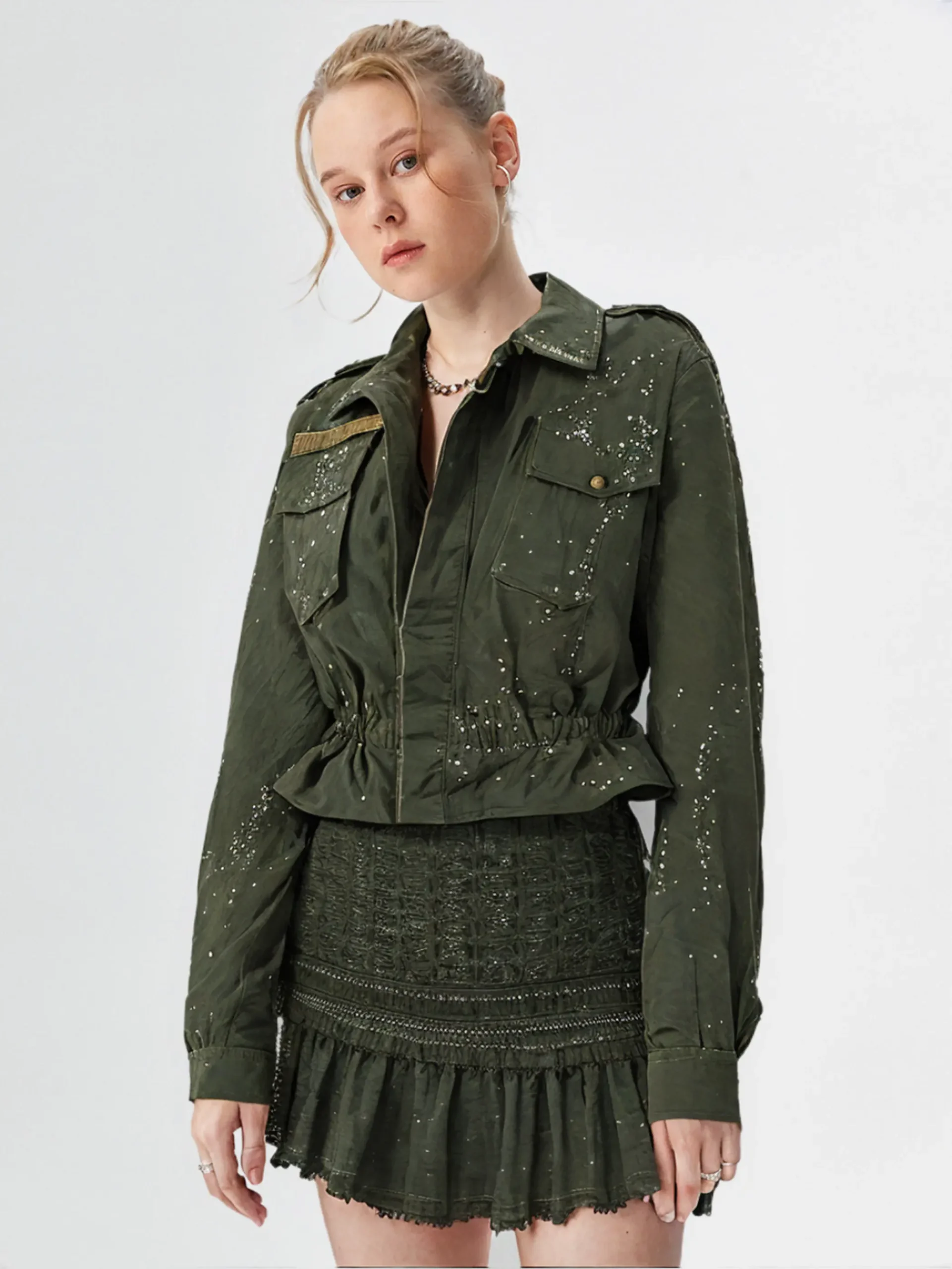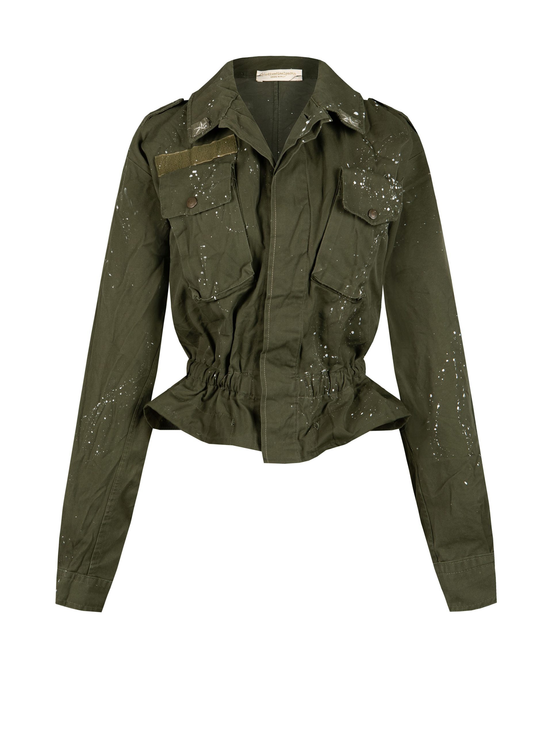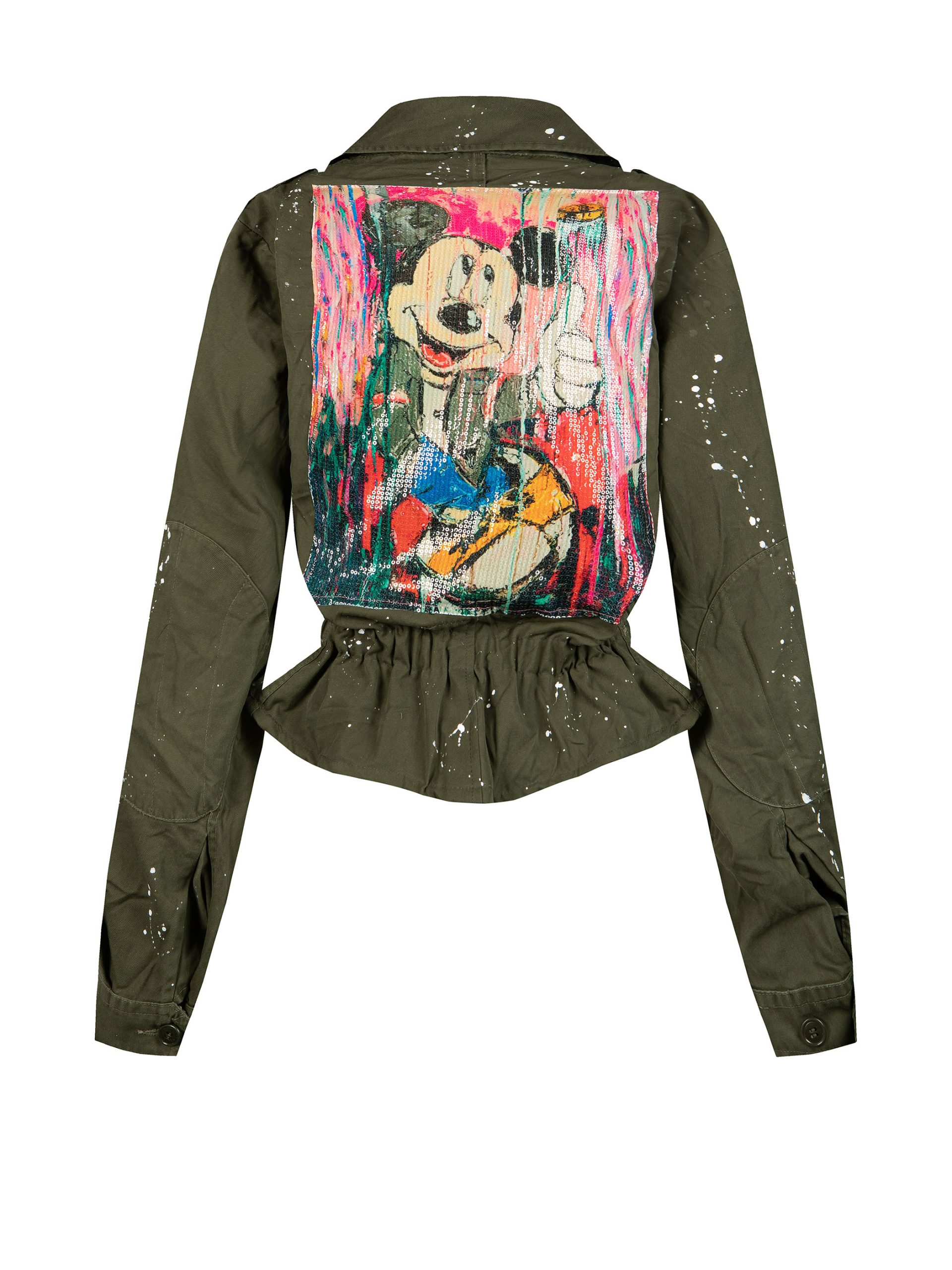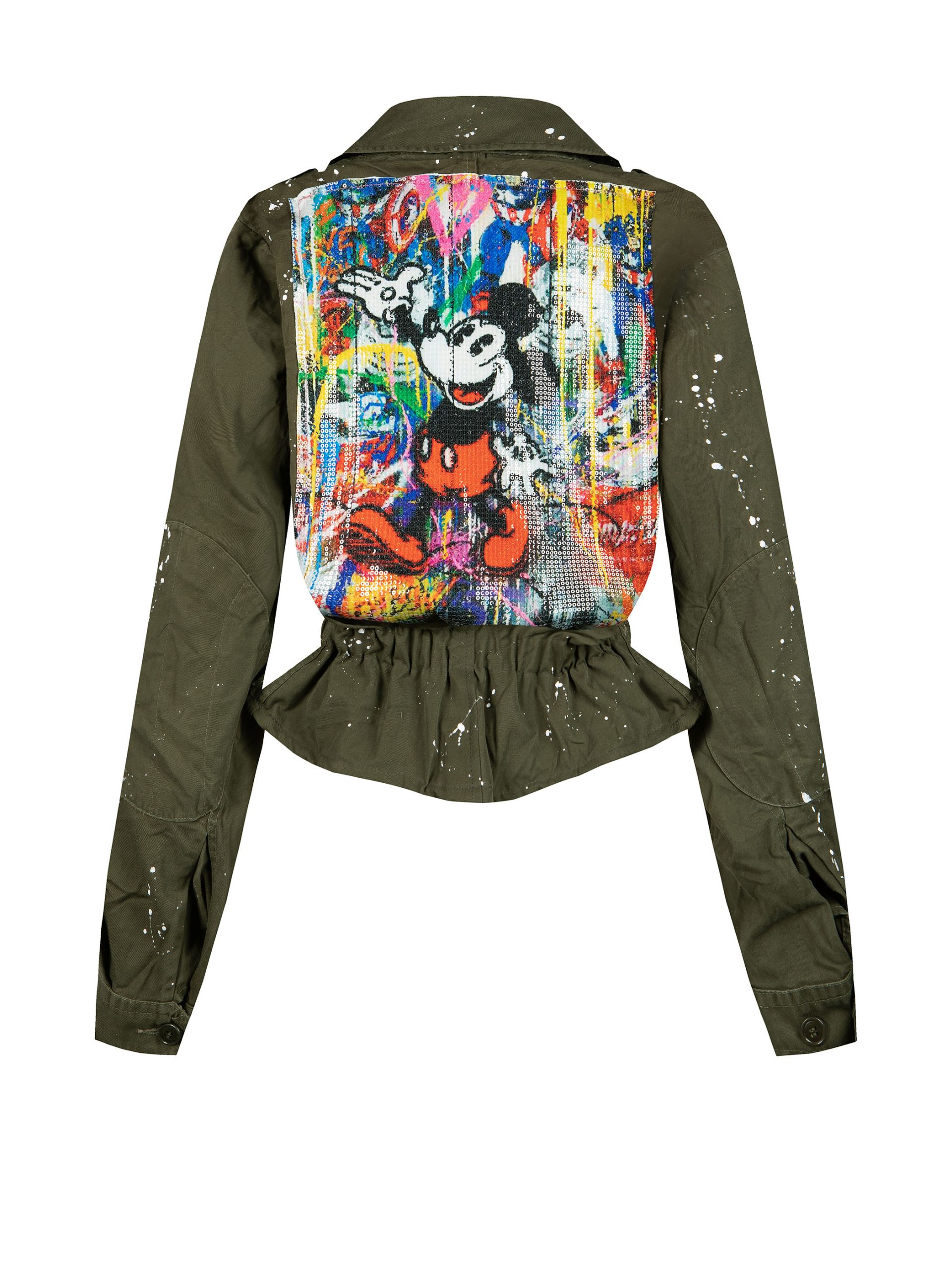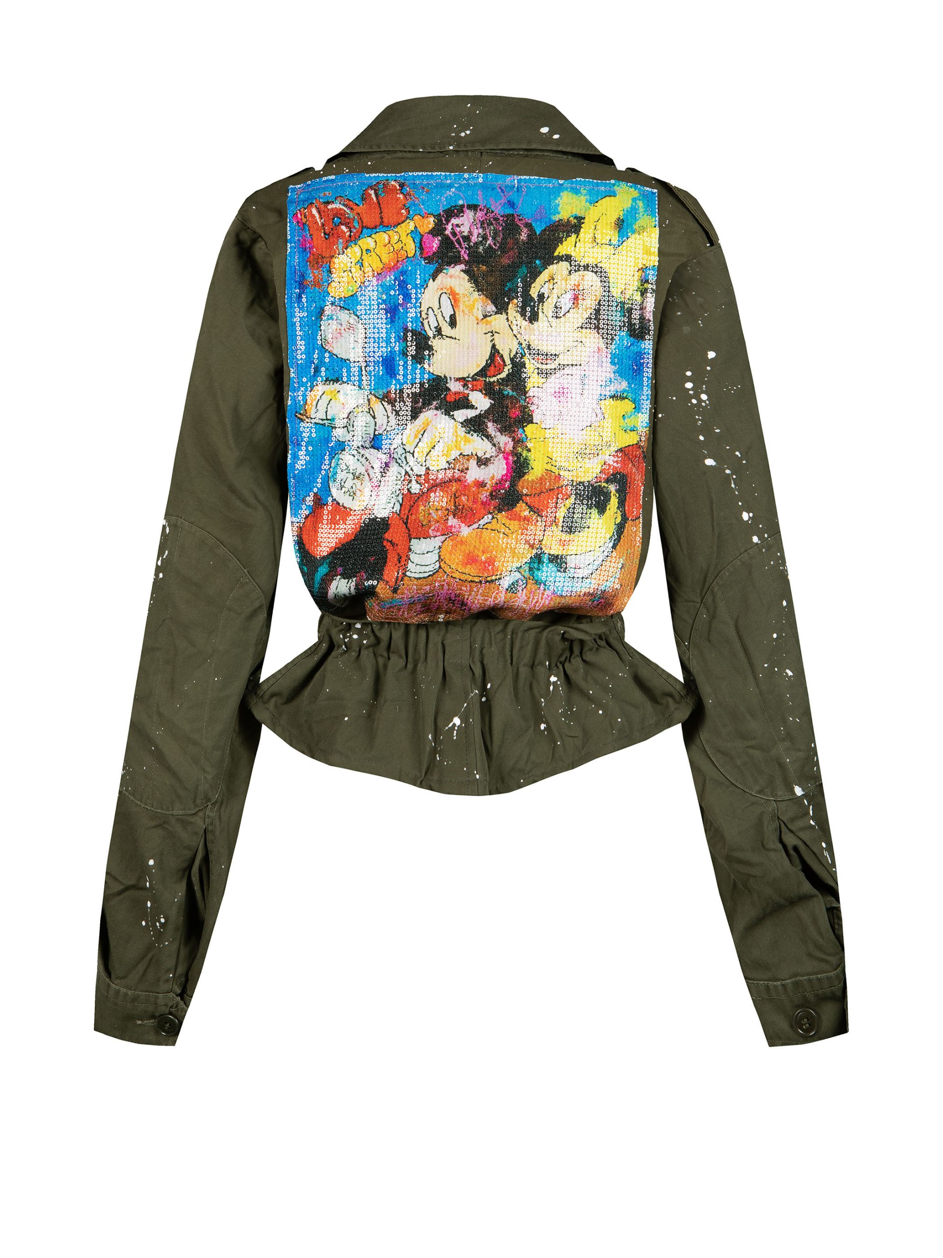 Giacca corta militare vintage originale rigenerata con tasche ed elastico in vita. Ogni capo è customizzato con lavorazioni artistiche e applicazioni di stampe su paillettes che conferiscono caratteristiche originali e soprattutto uniche. Queste giacche vintage originali di seconda mano hanno subito un processo di Relooking, il brand si avvale di un impulso creativo basato sui valori del upcycling rivalorizzando capi di abbigliamento per trasformarli in pezzi unici fashion. Ricordatevi quindi che quando acquistate delle creazioni upcycled senza tempo farete anche una dichiarazione di spirito.