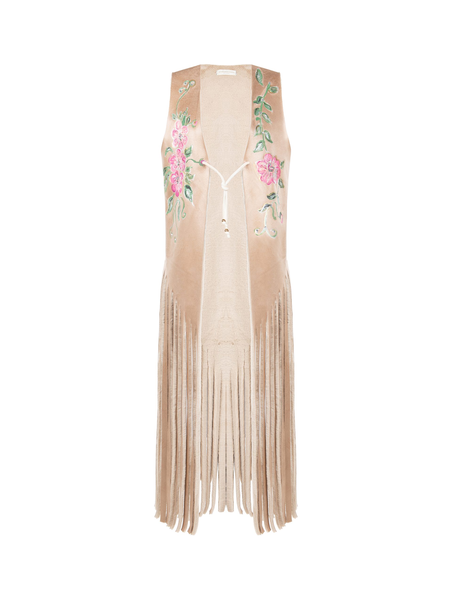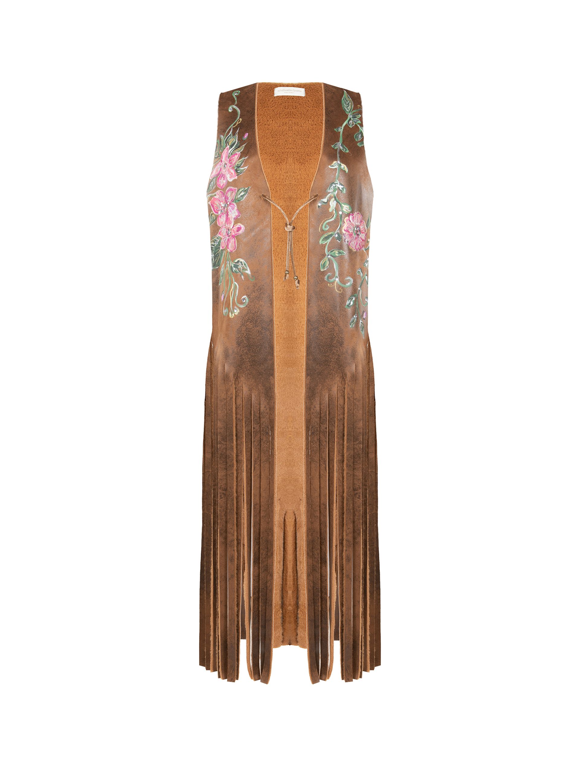 Gilet lungo Ecologico con Frange Dipinto a Mano