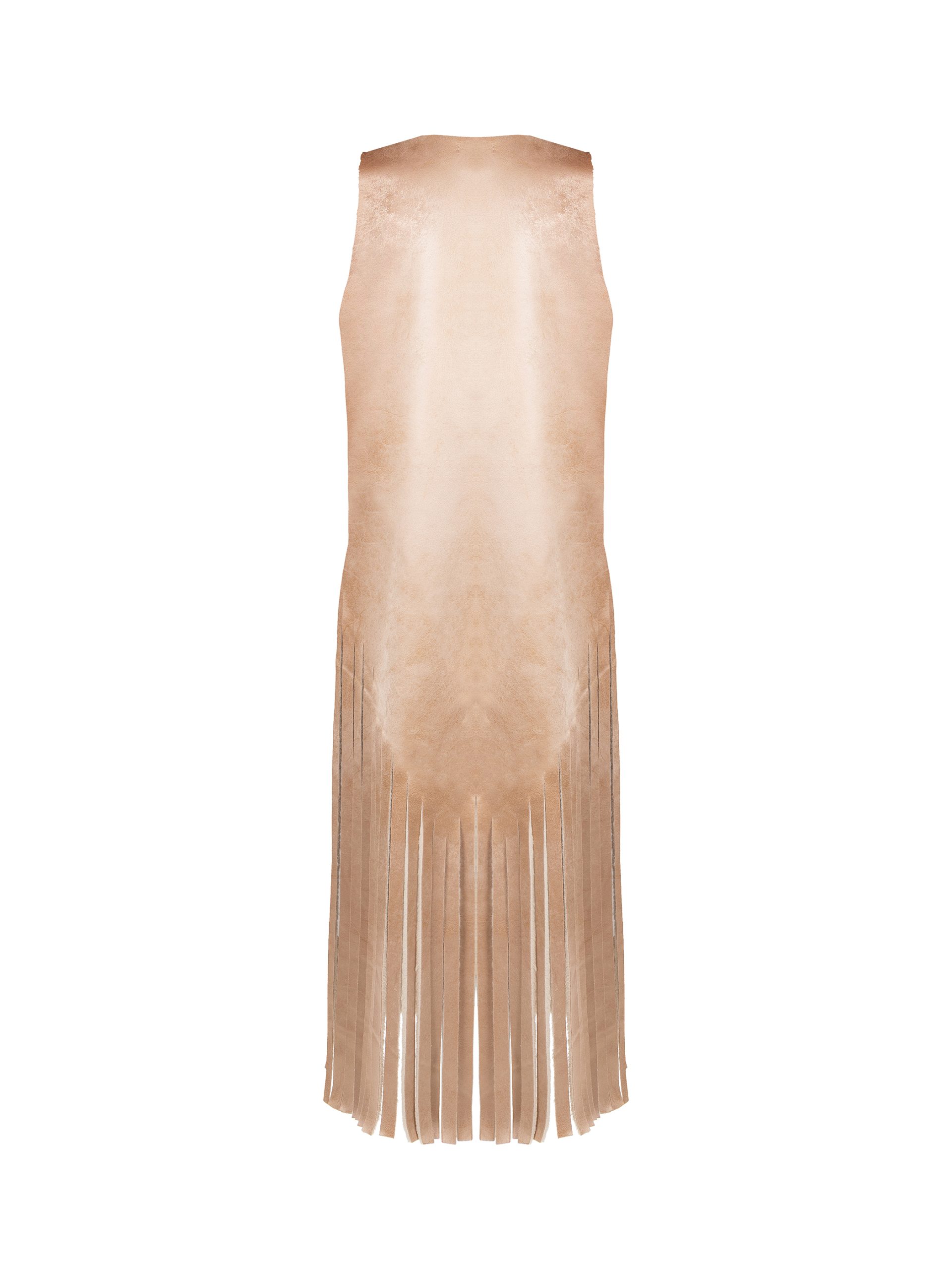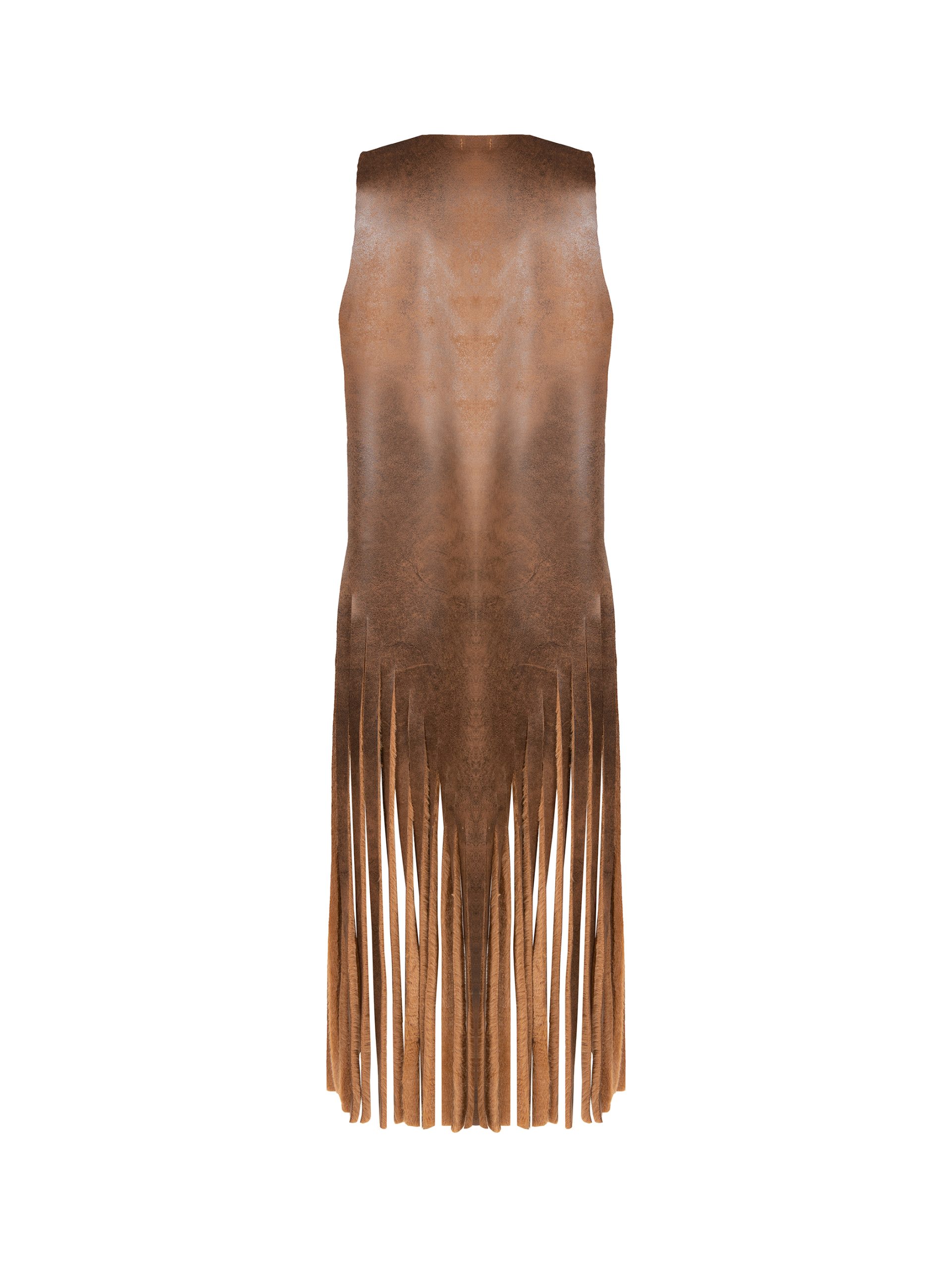 Gilet Lungo Smanicato in Montone Ecologico con Frange con decorazioni artigianali e strass