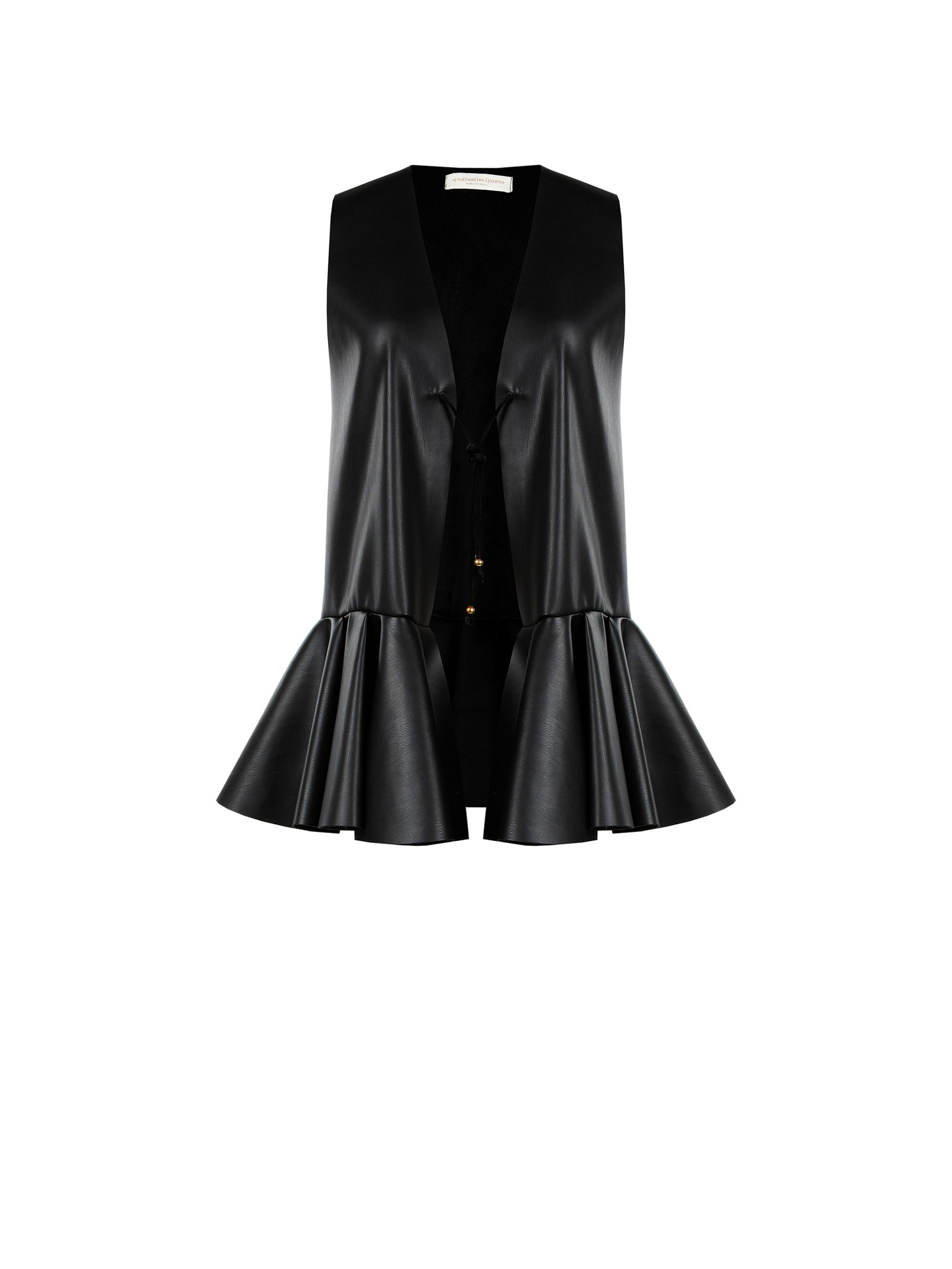 Gilet Smanicato con Volants in Ecopelle Dipinto a Mano