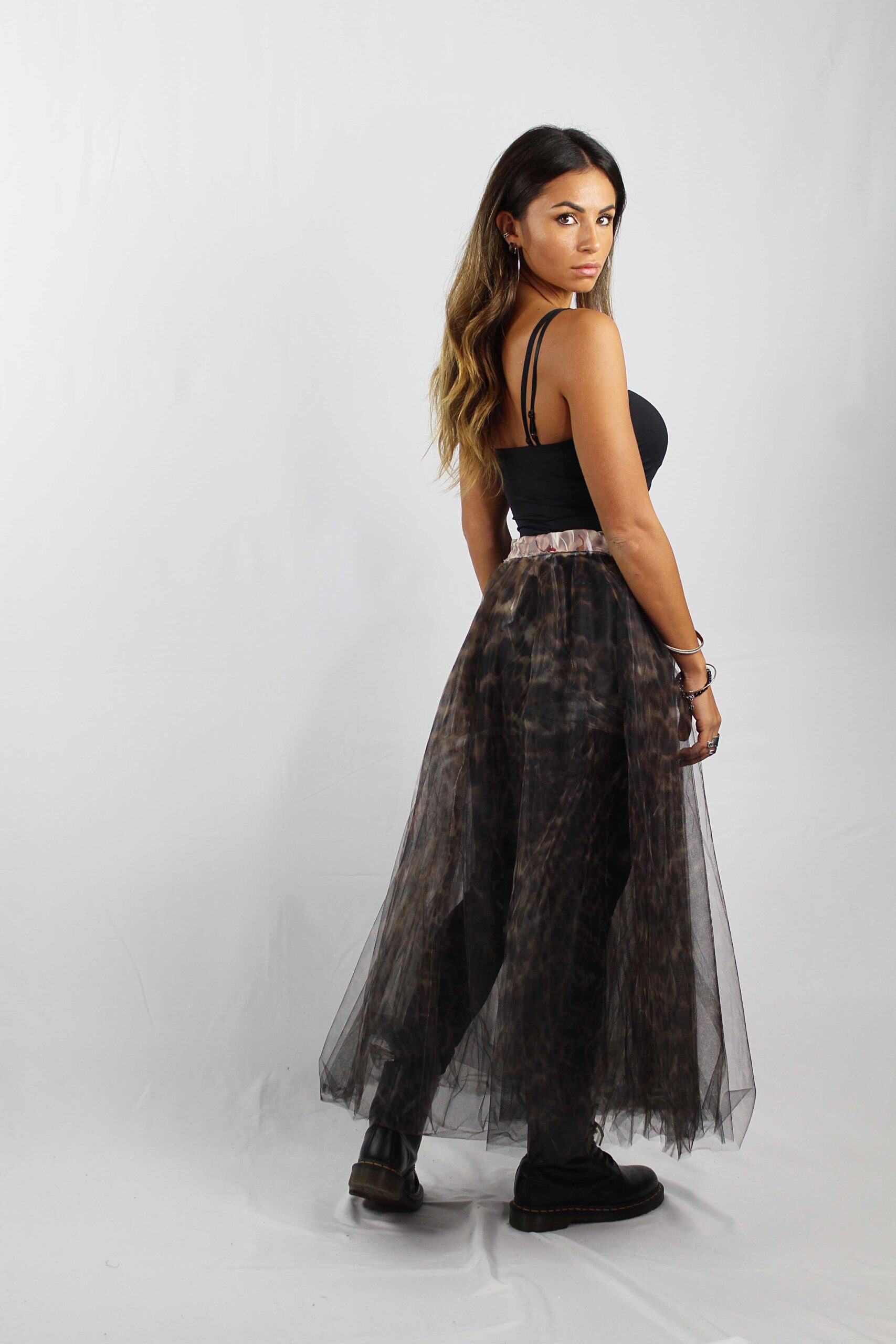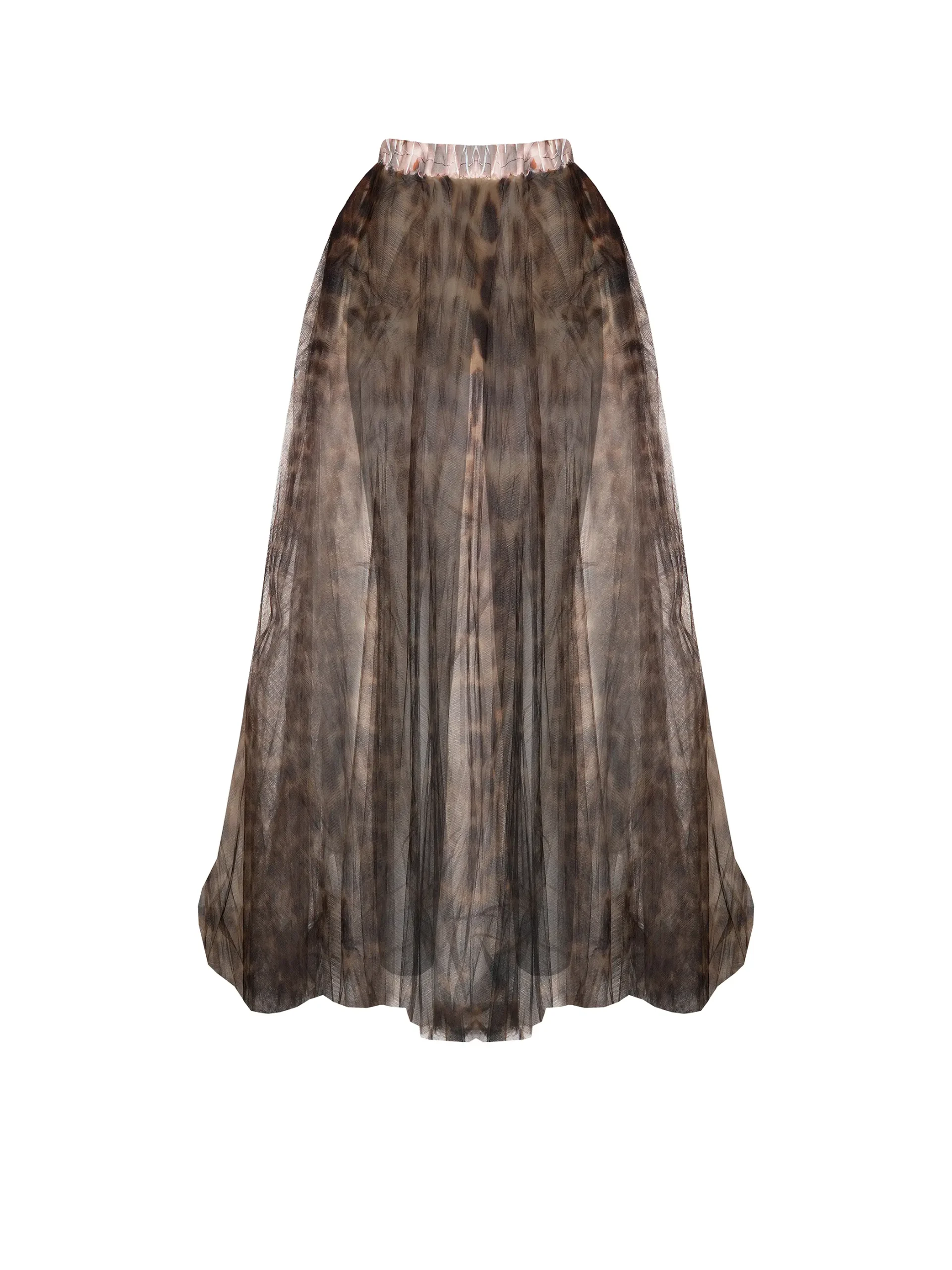 Gonna in Tulle 4 Strati Animalier Stampata a Mano