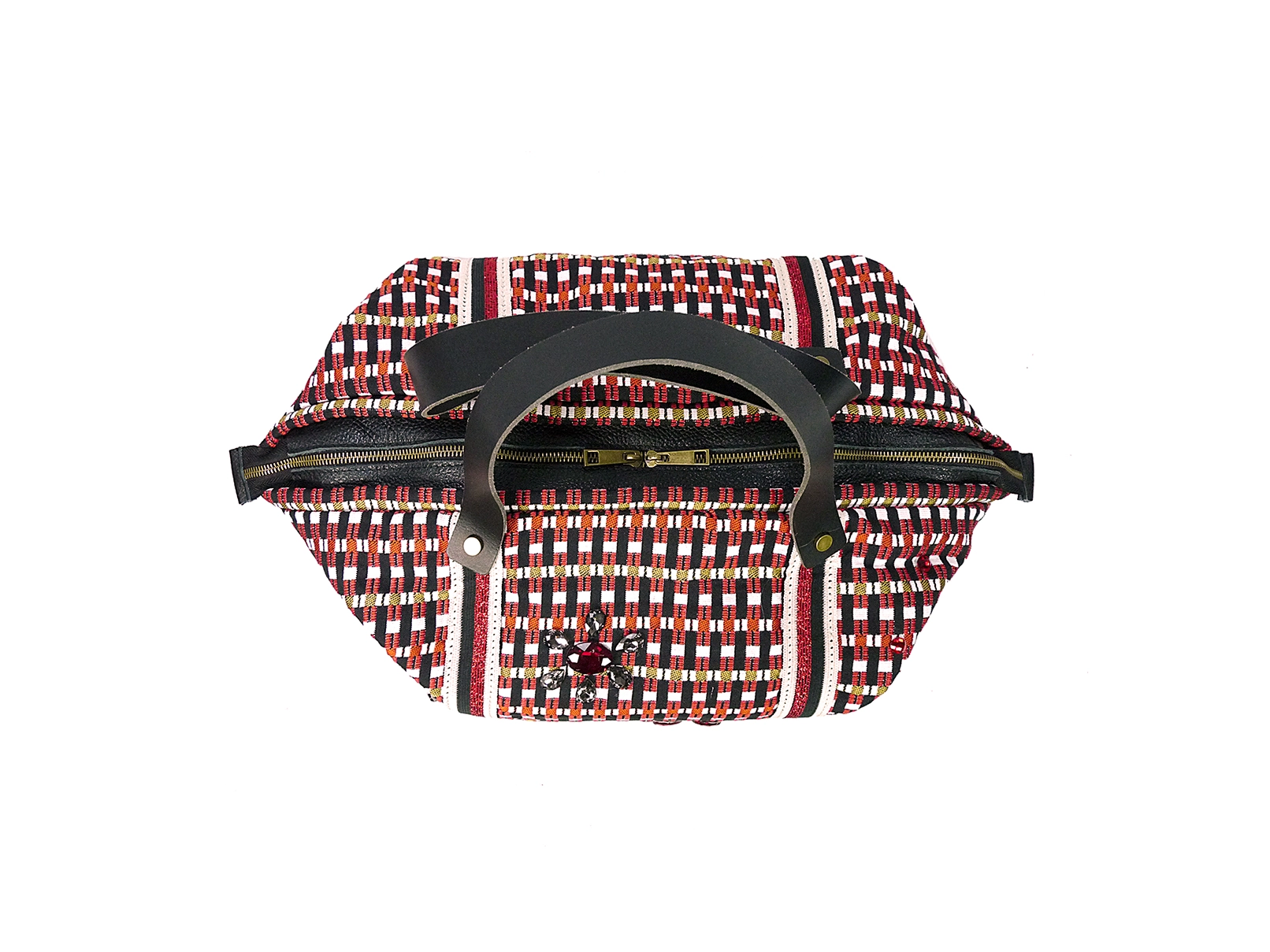 I manici in cuoio, pensati per un utilizzo a mano o a spalla, assicurano comfort e resistenza, mentre le pietre gioiello applicate donano un tocco di lusso e unicità.